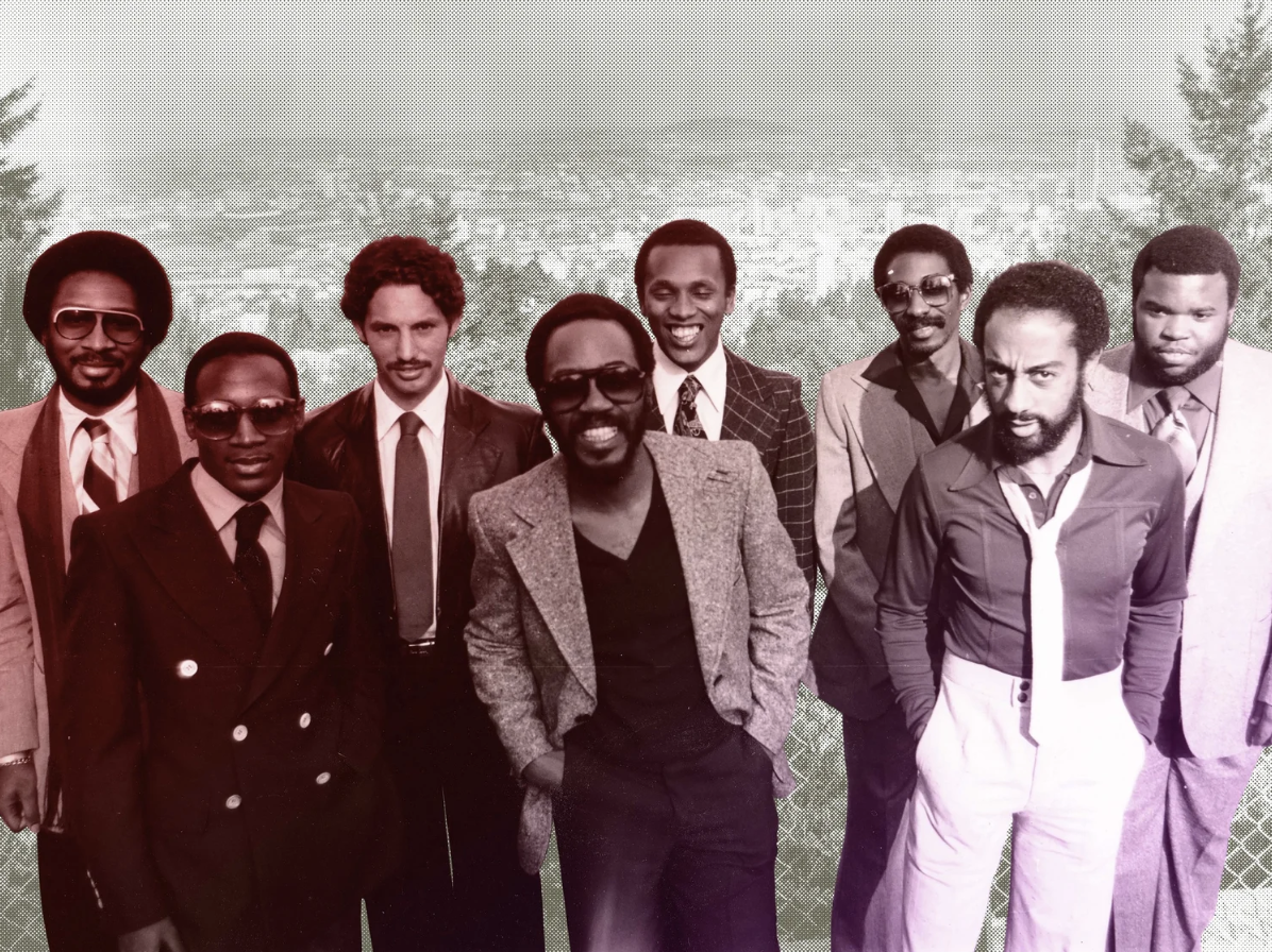 L-R: Johnny Sanders, Jimmy Sanders, Thara Memory, Rob Manning, Calvin Walker, Ronnie Young, Lester McFarland, and Melvin Vann.